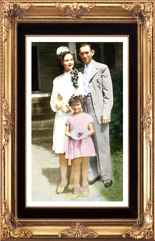 Ruth and Grover Proctor on their wedding day, with Flower Girl Janie Proctor